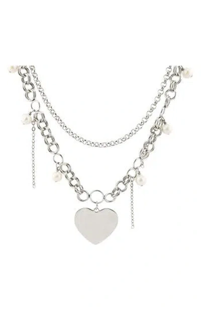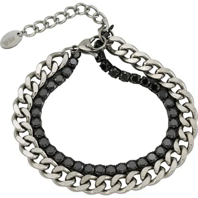 Cubic Zirconia & Curb Chain Layered Bracelet In Silver