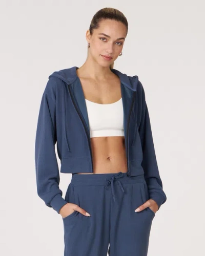 Effortless Fleece Crop Half Zip Sweatshirt In Moroccan Blue