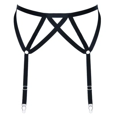 Women's Black Rogue Suspender - Adjustable Wide Band & Soft Strap Detail, With Hip Frills