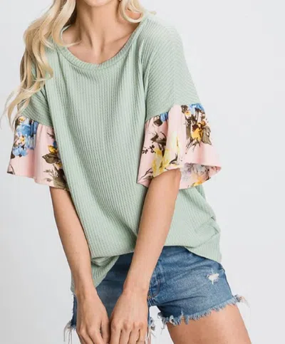 Floral Sleeve Top In Sage