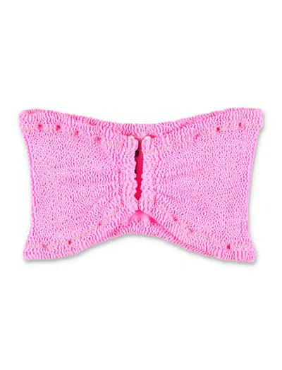 Strapless Bandeau Bikini Top In Textured Fabric In Violet