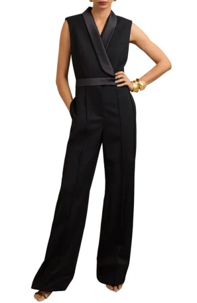 Gaia Satin Trim Sleeveless Jumpsuit In Black