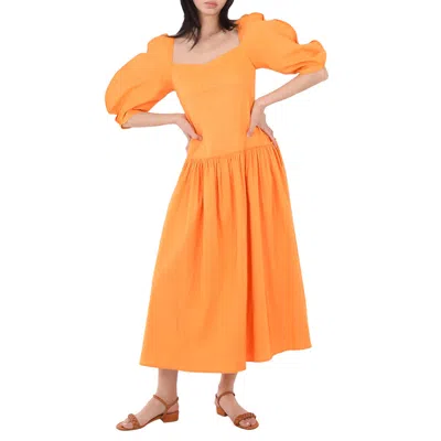 Woman Midi Dress Orange Size 12 Viscose, Linen, Cotton, Polyester