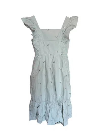 Women's Embroidered Midi Dress In Sage Green In Blue