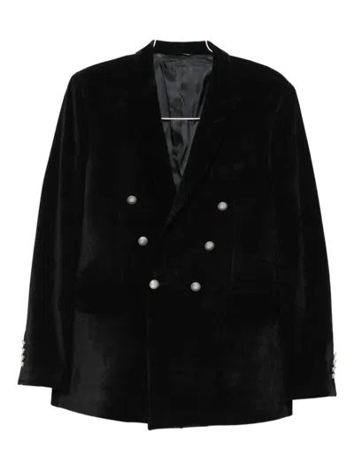 Double-breasted Velvet Jacket In Black