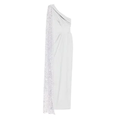 V-neck Capelet Dress In Silver