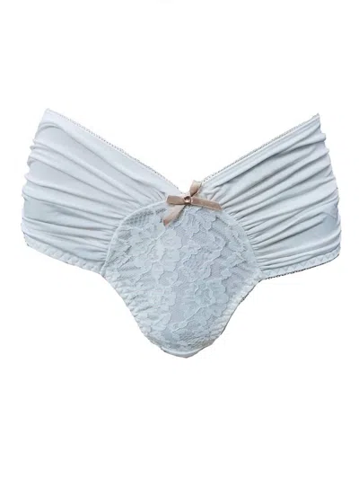 Women's Shear Bon Bon Lace Fancy Panty In White In Blue