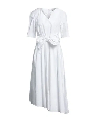 Woman Midi Dress White Size 8 Cotton, Elastane