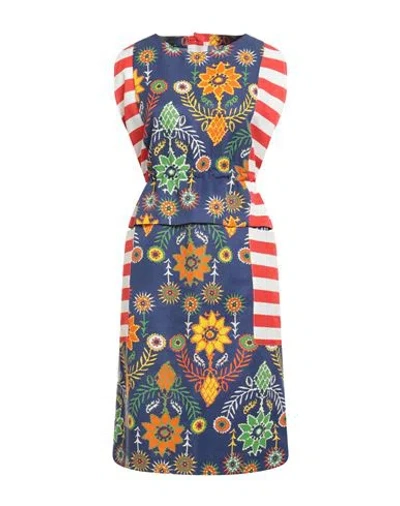 Woman Midi Dress Blue Size M Cotton, Viscose In Multi