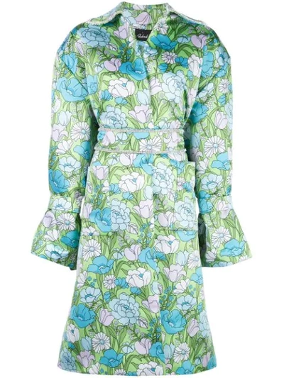Floral-print Plissé-satin Midi Skirt In Yellow