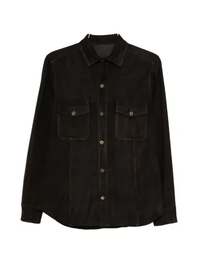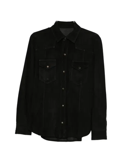 Suede Chest Pockets Shirt In Black