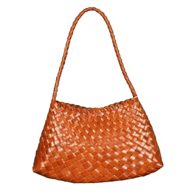 Women's Yellow / Orange Woven Leather Sling Bag 'erica' - Tan