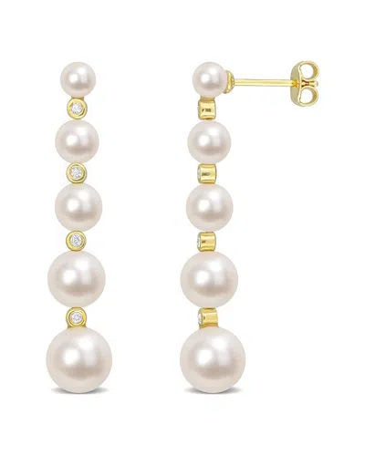 Gold Over Silver 0.24 Ct. Tw. White Topaz 4-6.5mm Pearl Graduated Dangle Earrings