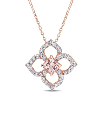 Rose Gold Vermeil 2.03 Ct. Tw. Gemstone Floral Necklace In Pink