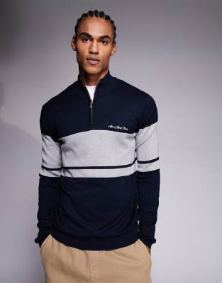 Half Zip Sweater With Color Blocked Detailing In Multi