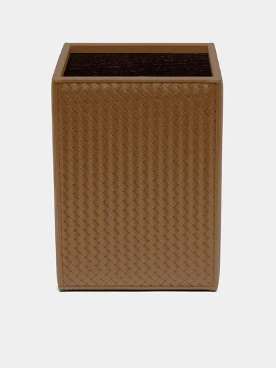 Woven Leather Wastepaper Basket Abask Luxury Gift In Brown
