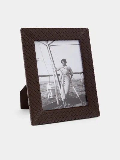 Woven Leather Photo Frame Abask Luxury Gift In Brown