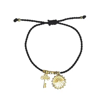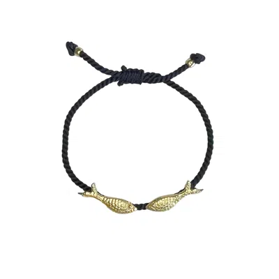 Women's Black / Gold Matsya Charm Bracelet - Gold Plated & Black Cord