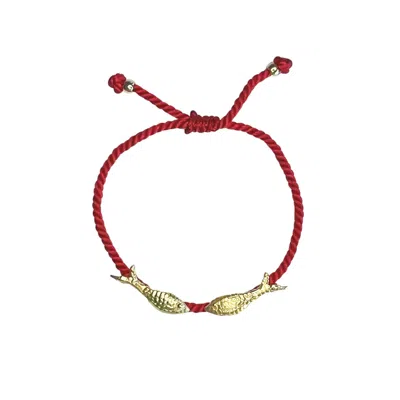 Women's Gold / Red Matsya Charm Bracelet - Gold Plated & Red Cord