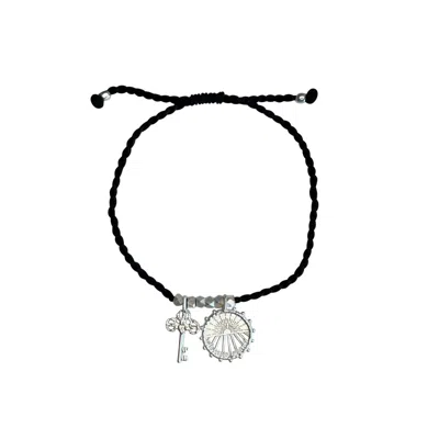 Women's Silver / Black Always Rising Charm Bracelet - Silver Plated & Black Cord In Multi
