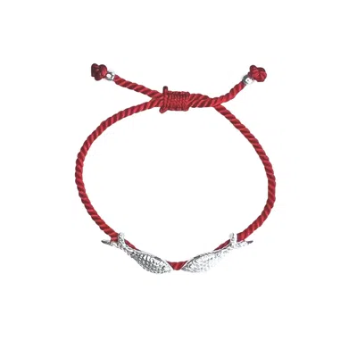Women's Silver / Red Matsya Charm Bracelet - Sterling Silver Plated & Red Cord