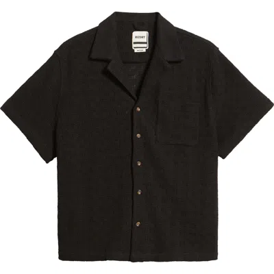 Madison Floral Cotton & Lyocell Plissé Camp Shirt In Black