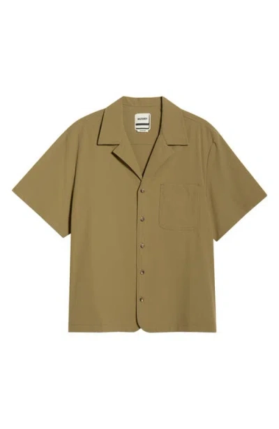 Elijah Geo Pattern Stretch Nylon Button-up Shirt In Beige