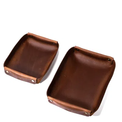 Leather Valet Tray - Set Of 2 - Brown