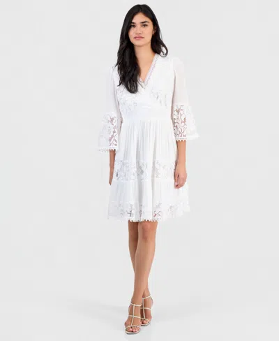 Petite Lace-combo 3/4-sleeve Dress In White