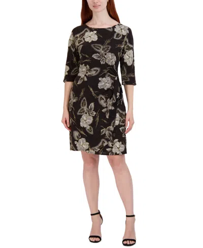 Plus Size Floral-print Side-knot 3/4-sleeve Sheath Dress In Multi