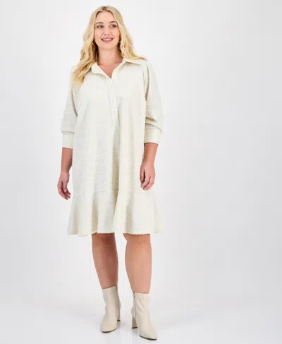 Petite Textured Button-front Dress In Multi