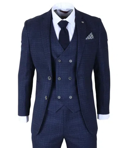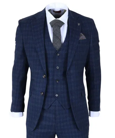 Ryan 3 Piece Tweed Slim Fit Suit In Blue