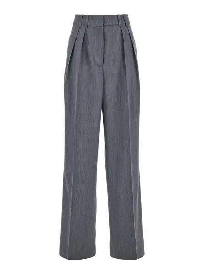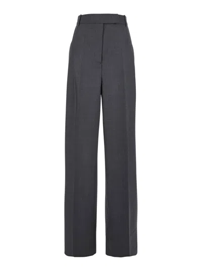 Grey High-waisted Pants With Pences And Belt Loops In Wool Blend Woman In Gray