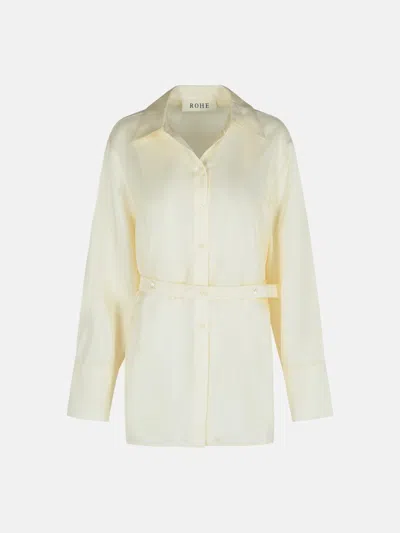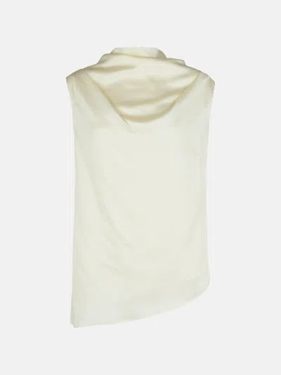 Binanco High Waist Pants With Lapel In Wool Blend In White