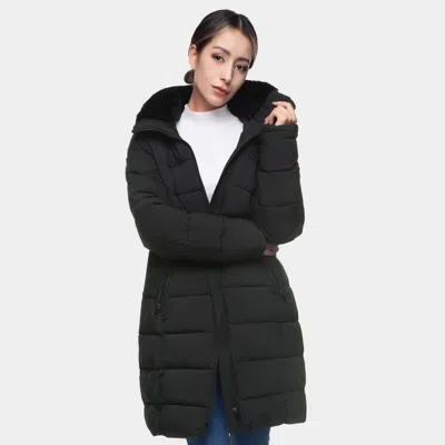 Women's Heavy Long Winter Coat With Fleece Hood Parka Jacket In Black