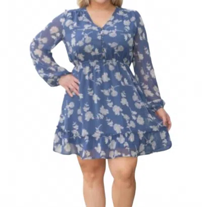 Women's Long Sleeve Button Front Dress In Blue And White