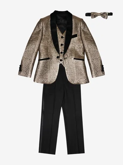 Kids' Romano Boys Velvet Shawl Collar 4 Piece Suit In Gold