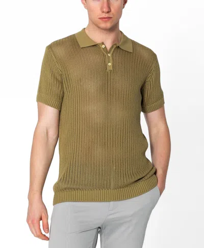 Men's Openwork Knit Polo Shirt In Brown