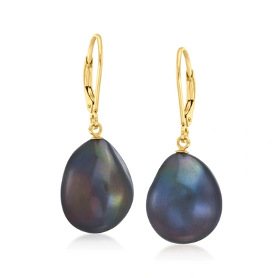 15x12mm Black Cultured Baroque Pearl Drop Earrings With 14kt Yellow Gold