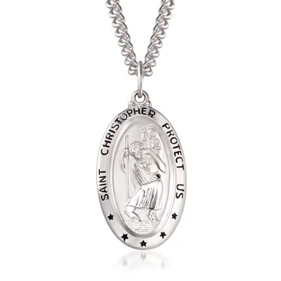 Men's Sterling Silver And Stainless Steel "saint Christopher Protect Us" Pendant Necklace
