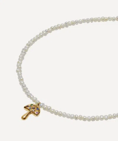 14ct Gold Baby Potato Pearl And Rainbow Sapphire Mushroom Beaded Necklace In White