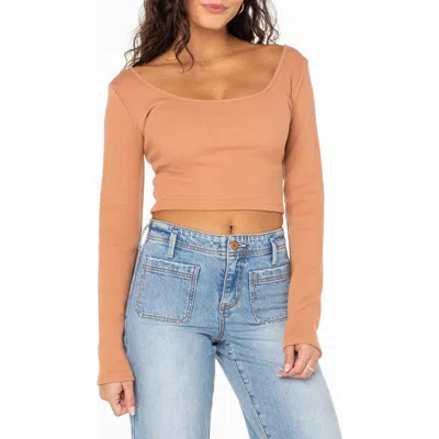 Good Keepsake Long Sleeve Cutout Ribbed Minidress In Brown