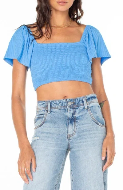 Sandy Beach Smocked Twist Reversible Crop Top In Blue