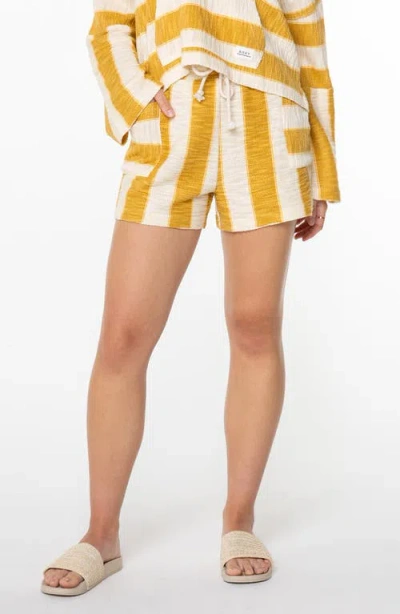 Sunny Coast Stripe Cotton Blend Shorts In Yellow