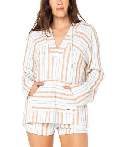 Juniors' Rich Coast Stripe Poncho Hoodie In Cloud Dancer