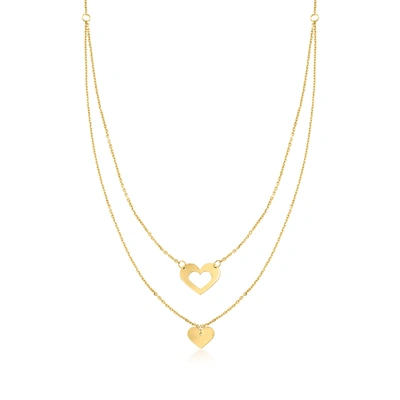 Ross-simons Italian 14kt Yellow Gold Heart Double Necklace In White