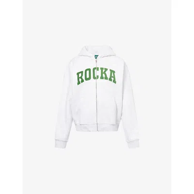 Womens Grey Green Varsity Logo-print Jersey Hoodie In Gray