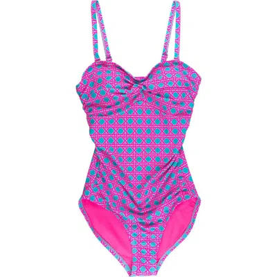 Quarter Zip Short Sleeve One Piece Rash Guard Swimsuit In Multi