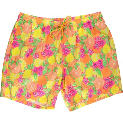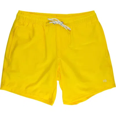 Stretch Dolphin Hem Swim Trunks In Yellow