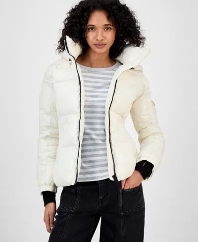 Women's Ella Hooded Thumbhole-cuff Shine Puffer Coat In Blue